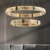 Bộ đèn sở hữu vẻ đẹp vô cùng ấn tượng với 2 vòng pha lê trong trẻo khảm đá xanh ngọc sang trọng. Bộ đèn cũng được tích hợp 3 chế độ sáng tiện dụng với ánh sáng trắng, vàng và trung tính. Tùy thời điểm trong ngày bạn có thể sử dụng chế độ phù hợp. Trang trí phòng khách sang trọng, phòng ăn hay phòng ngủ tuyệt đẹp với sản phẩm cao cấp này.