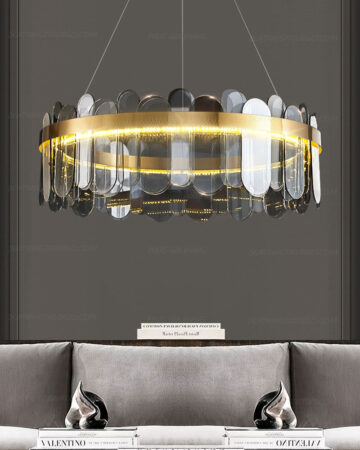 Đèn chùm thủy tinh L010 là một sản phẩm có thiết kế tối giản nhưng kông kém phần ấn tượng. Chiếc đèn đèn gồm các thanh thủy tinh màu khói được gắn dọc trên khung đèn xi mạ đồng đẹp mắt. Sử dụng bộ đèn để trang trí đẹp mắt cho phòng khách, phòng ngủ, phòng ăn…