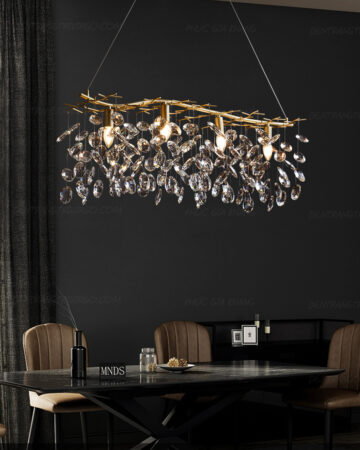 Bộ đèn chùm pha lê với các hạt pha lê K9 cao cấp, trong trẻo và đầy ấn tượng dưới ánh sáng. Chiếc đèn có thân dài 1 mét, cung cấp ánh sáng và tạo điểm nhấn tuyệt vời cho các bàn ăn sang trọng. Bóng LED đi kèm đèn cũng cho phép dễ dàng thay thế cùng với chất lượng gia công cao, đảm bảo thời gian sử dụng thật lâu dài cho bộ đèn.