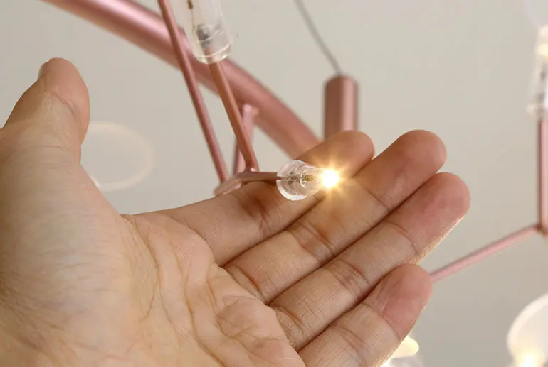 Các bóng LED nhỏ ẩn bên trong lá Hera. Đặc biệt các bóng LED vàng ấm này có tuổi thọ chiếu sáng cao và dễ dàng thay thế. Bộ đèn với 90 bóng đèn nhỏ tiết kiệm điện, tạo vẻ lộng lẫy cho không gian treo đèn nhưng vẫn rất nhẹ nhàng, ấm cúng.