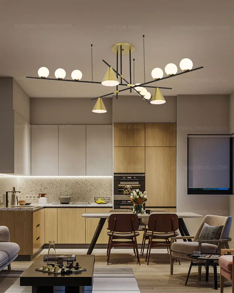 Thủy tinh là vật liệu được ưa chuộng hiện nay được sử dụng đẹp mắt trên Đèn chùm trang trí hiện đại VIRGO L167. Thủy tinh với các đặc tính trong suốt và truyền sáng tốt, nhẹ và cứng cáp, giúp tạo được kiểu dáng vô cùng thú vị cho bộ đèn.