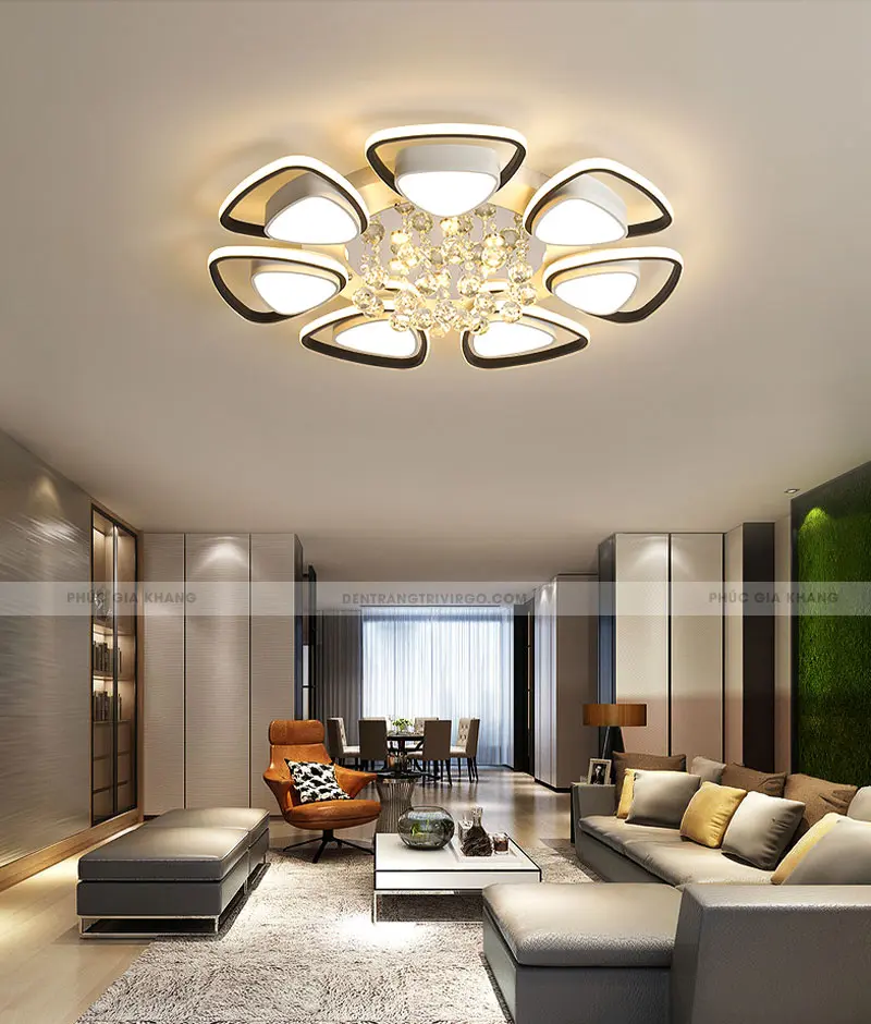 PMMA, Pha lê K9 là vật liệu được ưa chuộng hiện nay được sử dụng đẹp mắt trên Đèn ốp trần trang trí VIRGO L255. PMMA, Pha lê K9 với các đặc tính trong suốt và truyền sáng tốt, nhẹ và cứng cáp, giúp tạo được kiểu dáng vô cùng thú vị cho bộ đèn.
