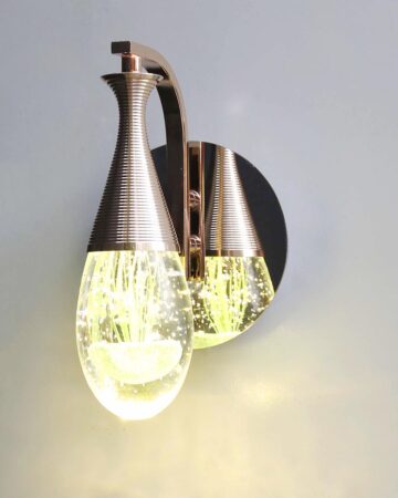 Bạn cảm thấy nhàm chán với các mẫu đèn tường đơn giản thông thường? Chắc chắn mẫu đèn tường hình giọt nước thủy tinh và con sứa xanh chắc chắc sẽ làm bạn hứng thú hơn. Sản phẩm có kiểu dáng đặc biệt sáng tạo và độc đáo. Chao thủy tinh bọt nước và sứa biển mô phỏng hình ảnh của đại dương. Ánh sáng LED từ chiếc đèn còn làm cho không gian căn phòng bạn thêm phần hấp dẫn.