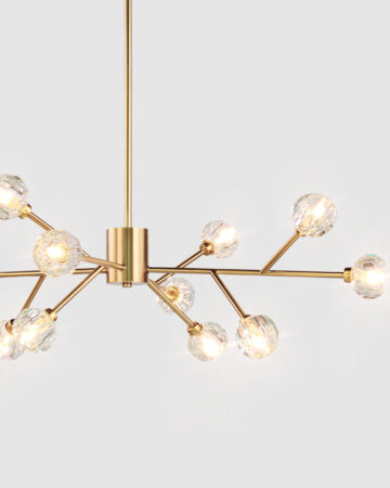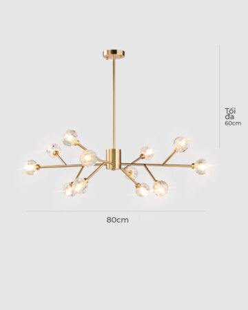 Đèn chùm pha lê L578 là sản phẩm có thiết kế hiện đại và đầy ấn tượng. Khung đèn hợp kim vàng bóng nổi bật với các chụp đèn bằng pha lê trong suốt. Sử dụng bộ đèn không chỉ chiếu sáng đơn thuần mà còn tạo điểm nhấn tinh tế cho căn phòng. Thanh treo đèn cũng cho phép điều chỉnh phù hợp với chiều cao trần nhà.