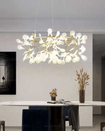 Bộ đèn Hera sở hữu kiểu dáng vô cùng ấn tượng và ánh sáng hấp dẫn. Sử dụng bộ đèn để trang trí, tạo điểm nhấn sang trọng cho nhiều không gian như phòng khách, phòng ăn, phòng ngủ… Ánh sáng từ các bóng đèn LED nhỏ được làm mềm qua chao đèn trắng, tạo nguồn không khí dễ chịu. Bóng đèn cũng cho phép thay thế dễ dàng.