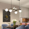 Bộ đèn thả 4 bóng L602G mang nét sinh động, duyên dáng đến khu vực bàn ăn của gia đình bạn. Bộ đèn với hình ảnh chim bồ câu câu đậu trên cành cây cách điệu đầy thú vị. Sản phẩm sở hữu chất lượng hoàn thiện cao cấp với khung bằng vật liệu hợp kim nhôm sơn tĩnh điện cứng cáp. Chụp đèn thủy tinh làm mềm giúp ánh sáng lan tỏa thật dễ chịu.