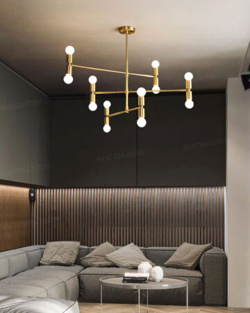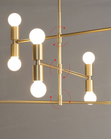 Đèn chùm phân tử L618 có thiết kế các nhánh đen xoay tự do, cho phép điều chỉnh hướng chiếu sáng theo các bộ cục khác nhau. Đèn sử dụng bóng LED thủy tinh đục, giúp tạo nguồn sáng dễ chịu. Thân đèn được hoàn thiện từ vật liệu hợp kim nhôm cứng cáp, xi vàng bóng sang trọng.
