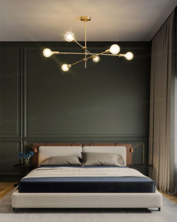 Bộ đèn chùm 6 bóng với thiết kế đơn giản, hiện đại và tính ứng dụng cao. Đèn sử dụng phù hợp cho nhiều không gian như phòng khách, phòng ngủ, phòng ăn… Ánh sáng ấm cúng, dễ chịu với các nhánh đèn xoay tự do. Thanh treo đèn cũng cho phép điều chỉnh độ dài tùy theo chiều cao trần nhà.