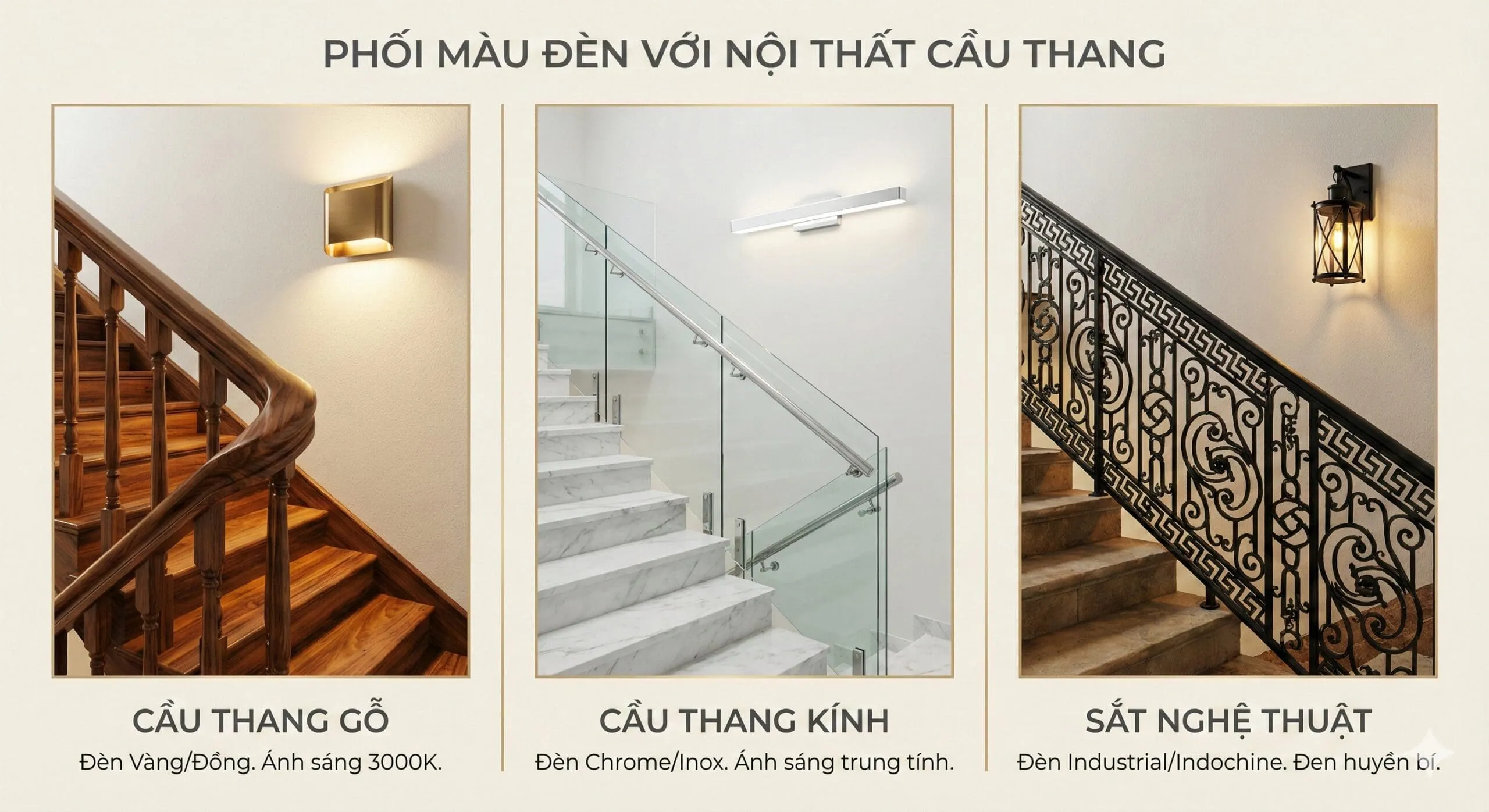 Bạn muốn biến lối đi đơn điệu thành điểm nhấn nghệ thuật? Khám phá 5 mẫu đèn tường cầu thang đẹp xuất sắc 2026: Từ hiện đại, chống lóa đến phong cách Indochine sang trọng. Hướng dẫn lắp đặt chuẩn chuyên gia.