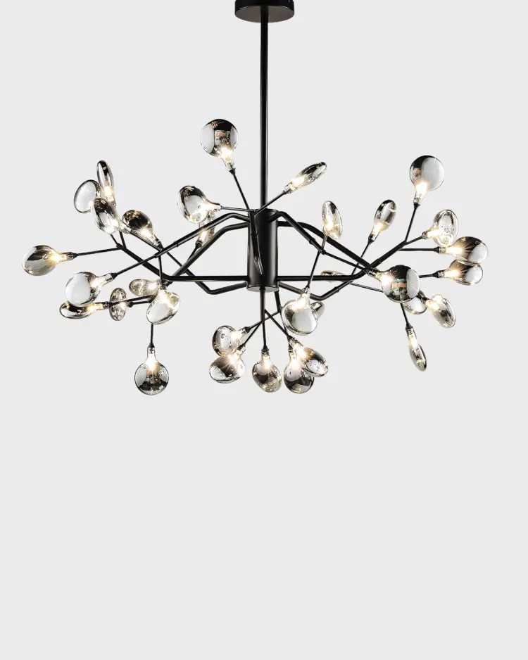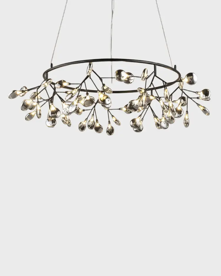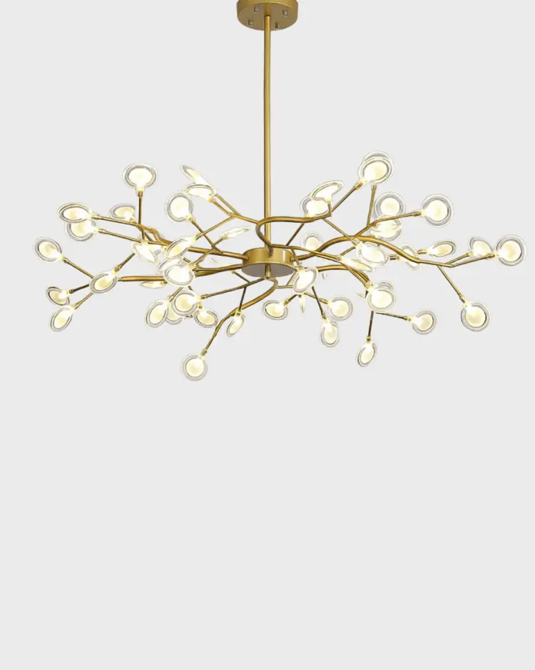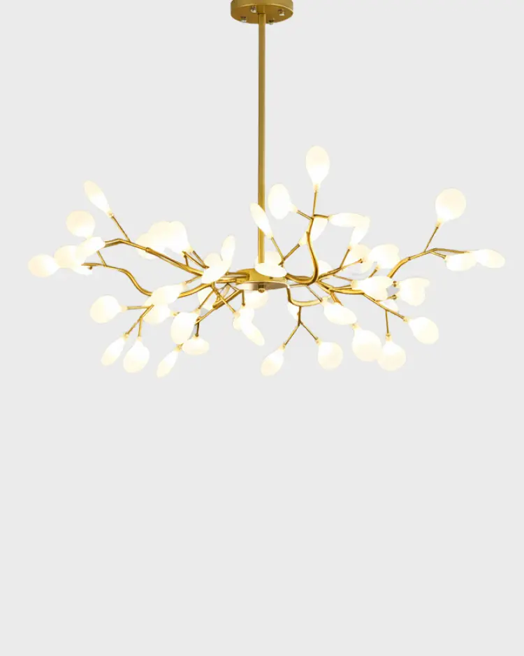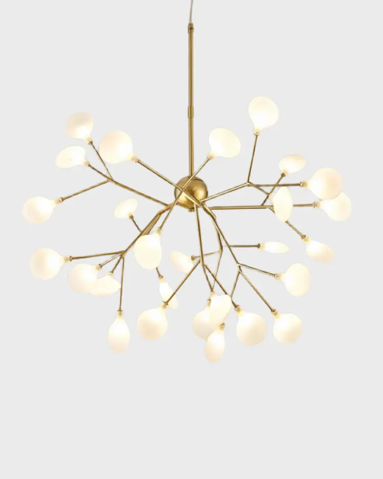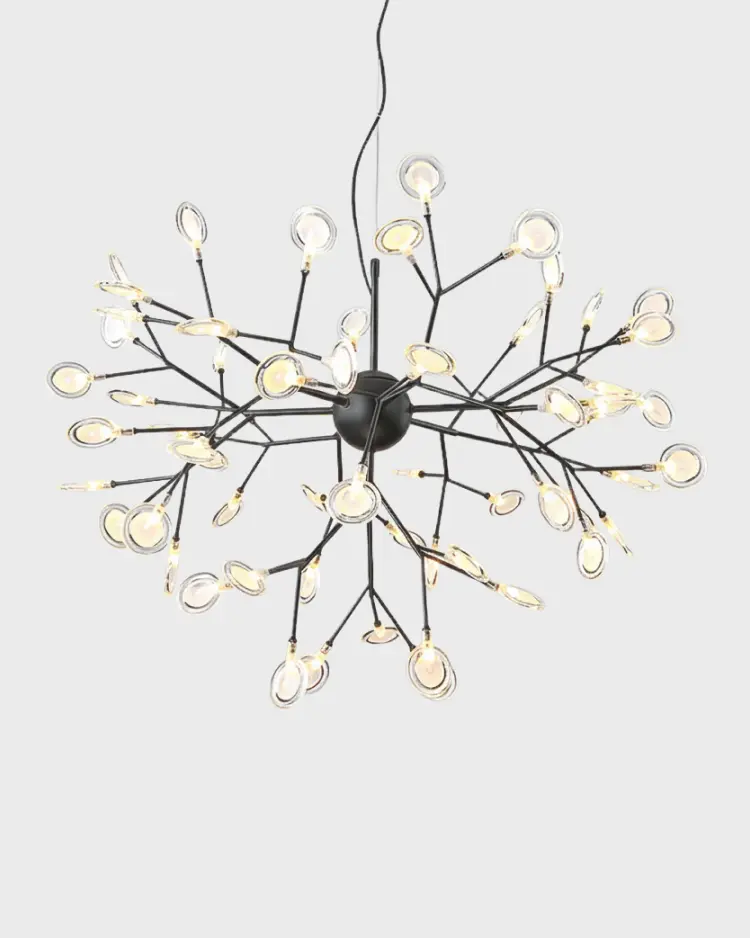 Cấu trúc phân nhánh (Branching Structure): Khung đèn là một mạng lưới các nhánh kim loại mảnh, mô phỏng cành cây. Các nhánh này được sắp xếp một cách ngẫu hứng nhưng cân đối, tạo nên một tổng thể mềm mại và bay bổng.