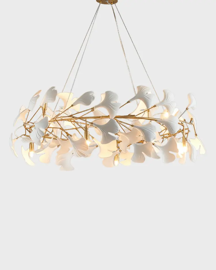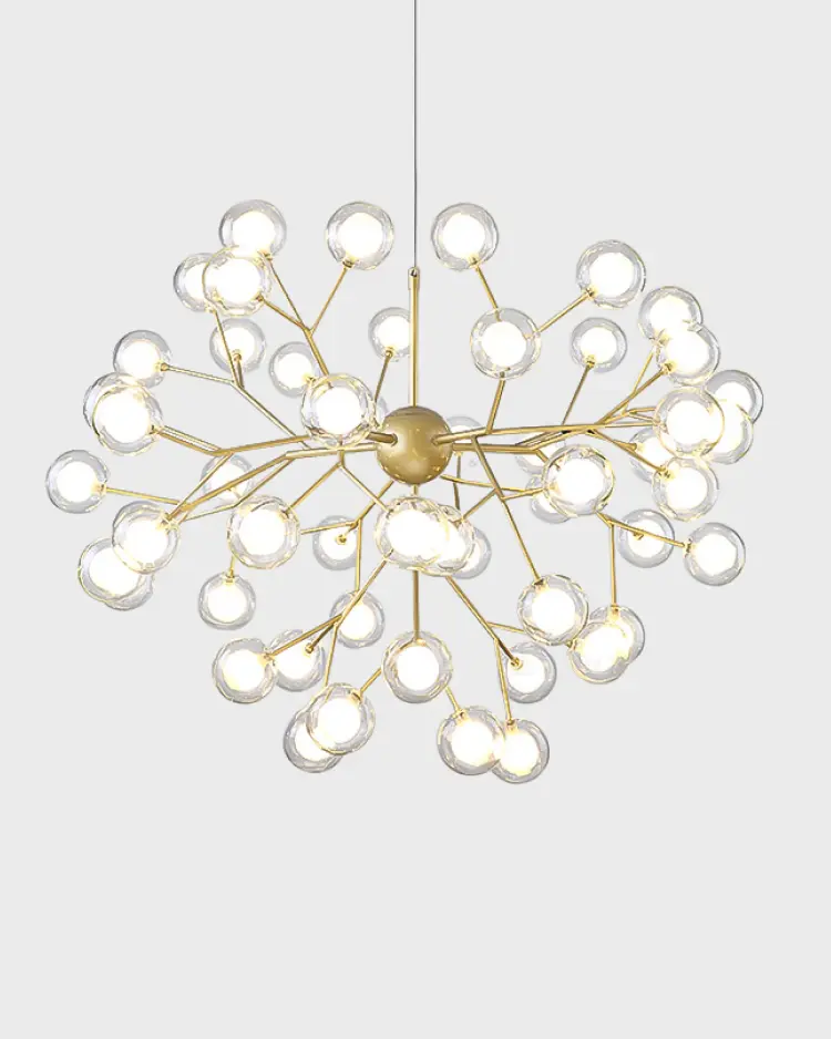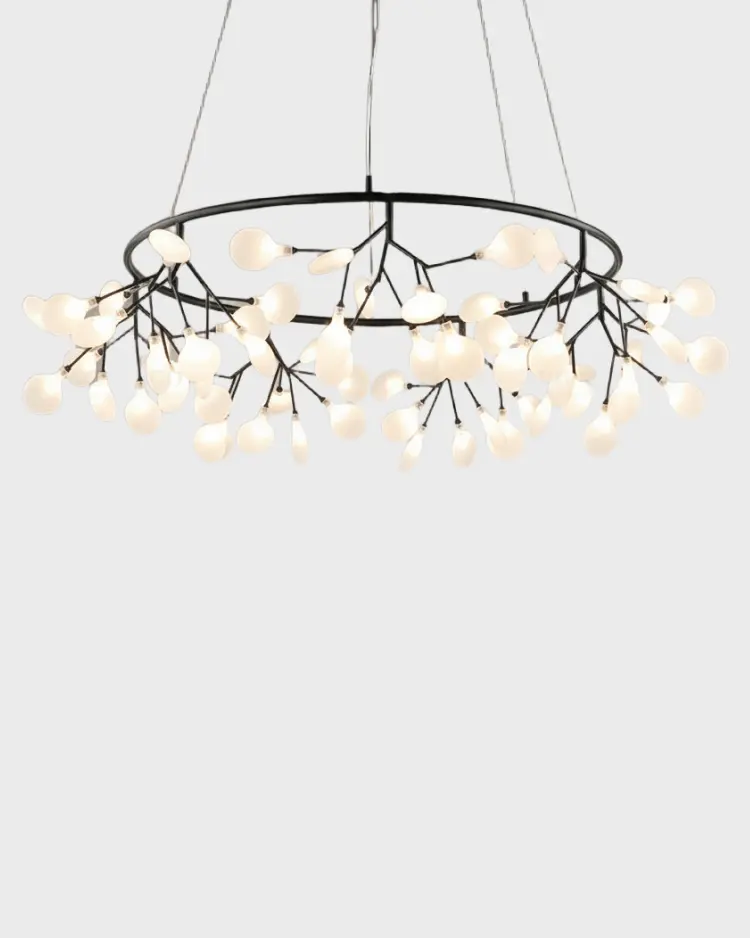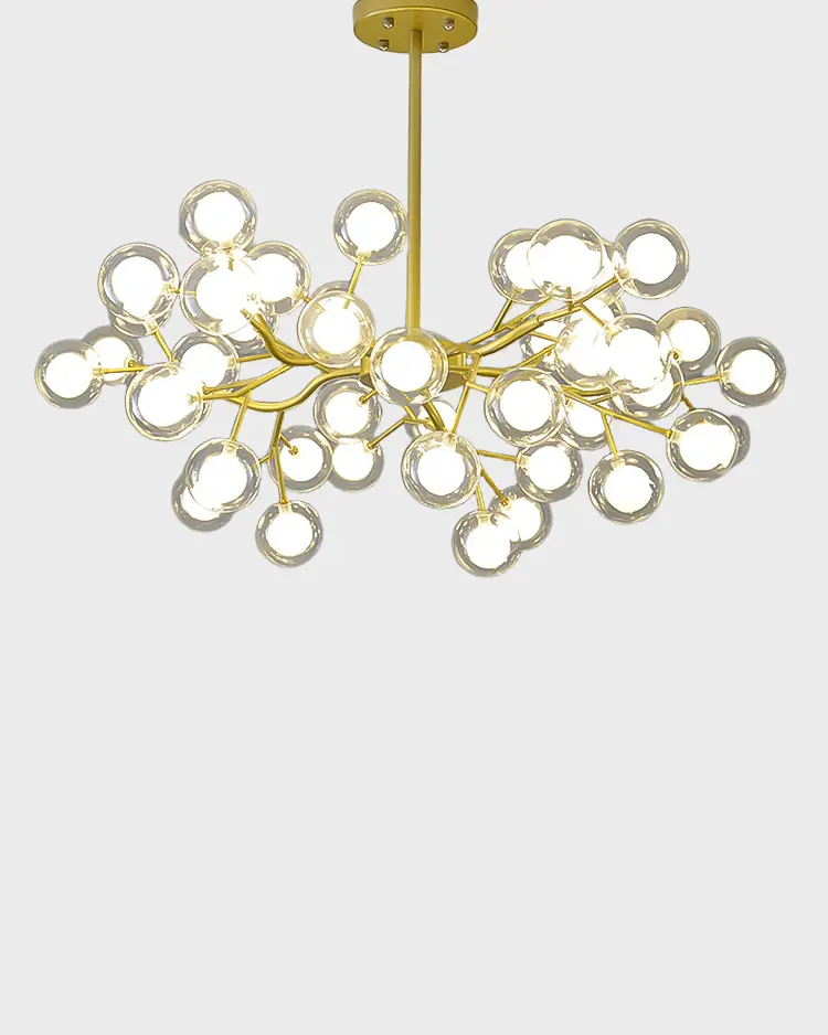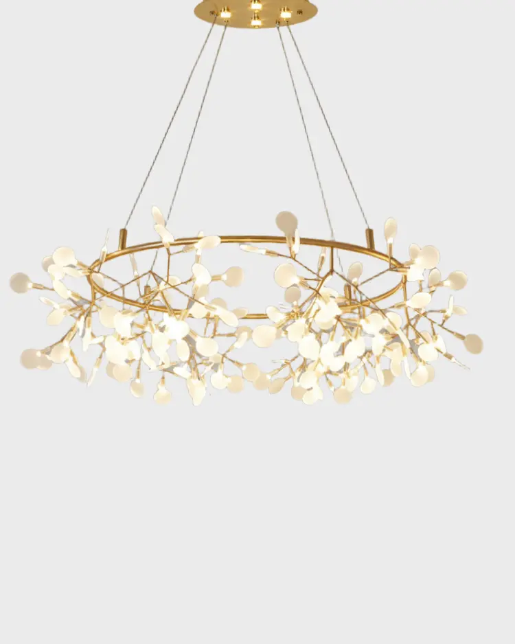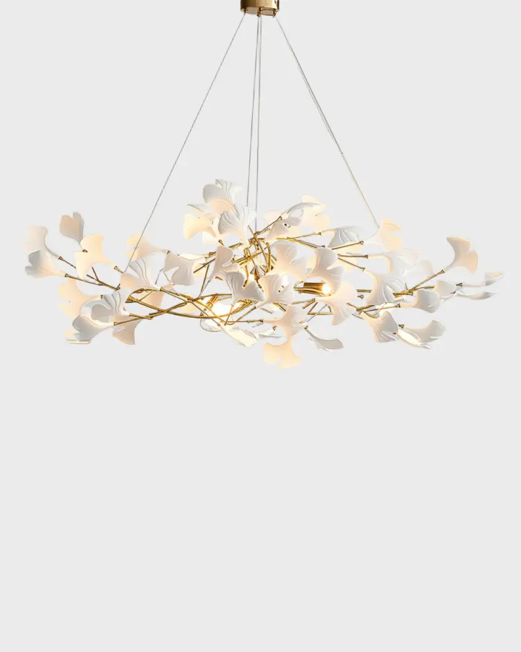 Cấu trúc phân nhánh (Branching Structure): Khung đèn là một mạng lưới các nhánh kim loại mảnh, mô phỏng cành cây. Các nhánh này được sắp xếp một cách ngẫu hứng nhưng cân đối, tạo nên một tổng thể mềm mại và bay bổng.