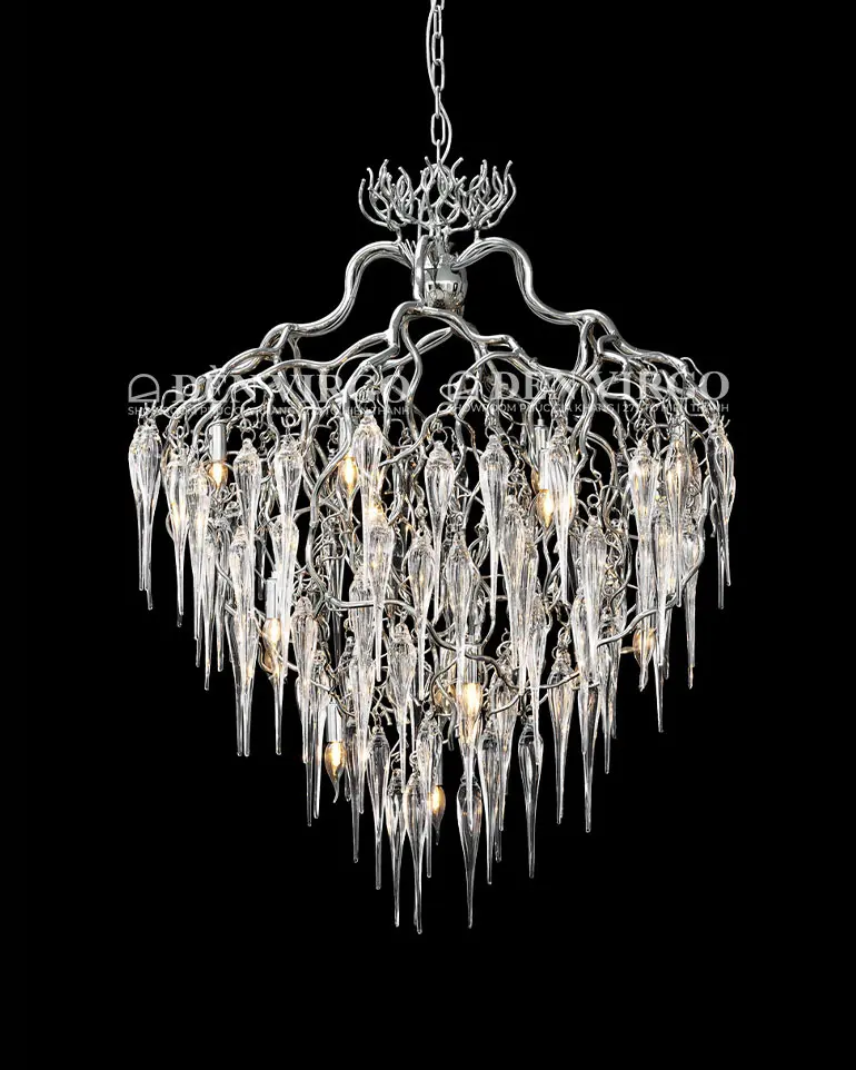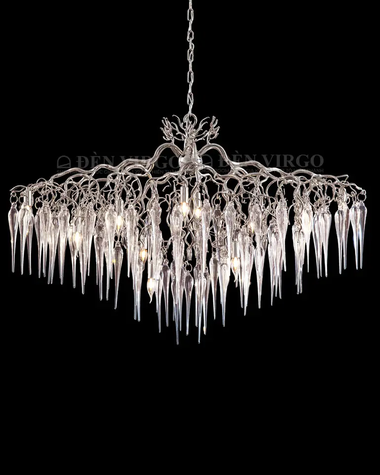 Cấu trúc trụ đứng: Chi tiết chính là các thanh/ống kim loại hoặc thủy tinh/pha lê dài, mảnh và thả thẳng đứng từ trần nhà xuống.