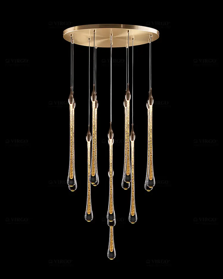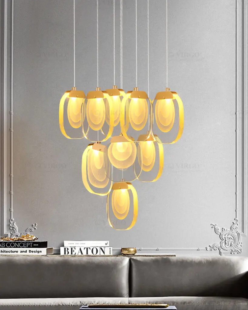 Đèn chùm ống là loại đèn trang trí sử dụng các chi tiết hình trụ, hình ống (Tube), hoặc hình bơ (Canister) làm bộ phận chiếu sáng hoặc trang trí chính. Thiết kế này mang lại vẻ ngoài hiện đại, gọn gàng và thường được kết hợp để tạo thành một chùm ánh sáng đa chiều ấn tượng.