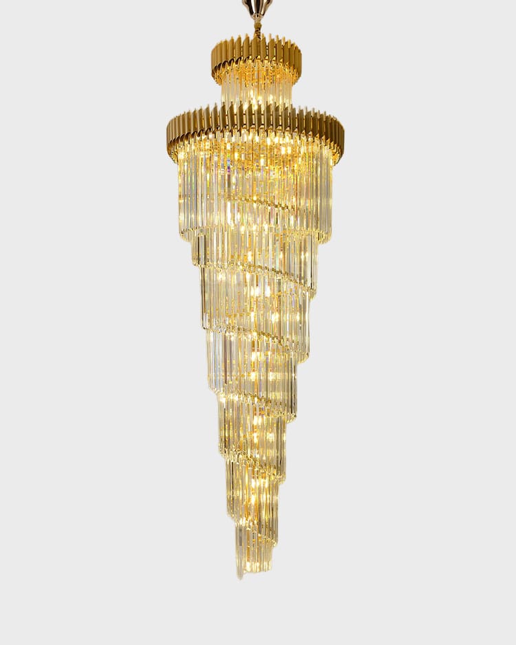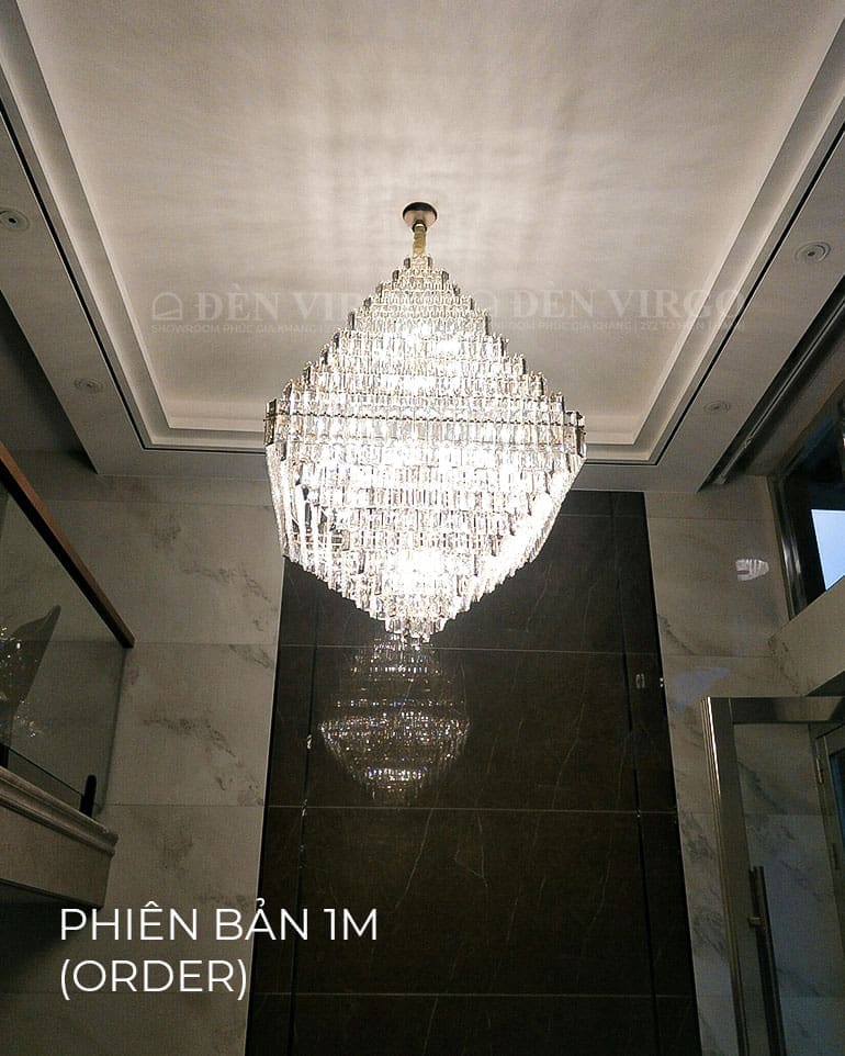 Đặc biệt, đèn chùm pha lê thả thông tầng là lựa chọn hàng đầu để làm nổi bật chiều cao và kiến trúc của khu vực cầu thang hay giếng trời.