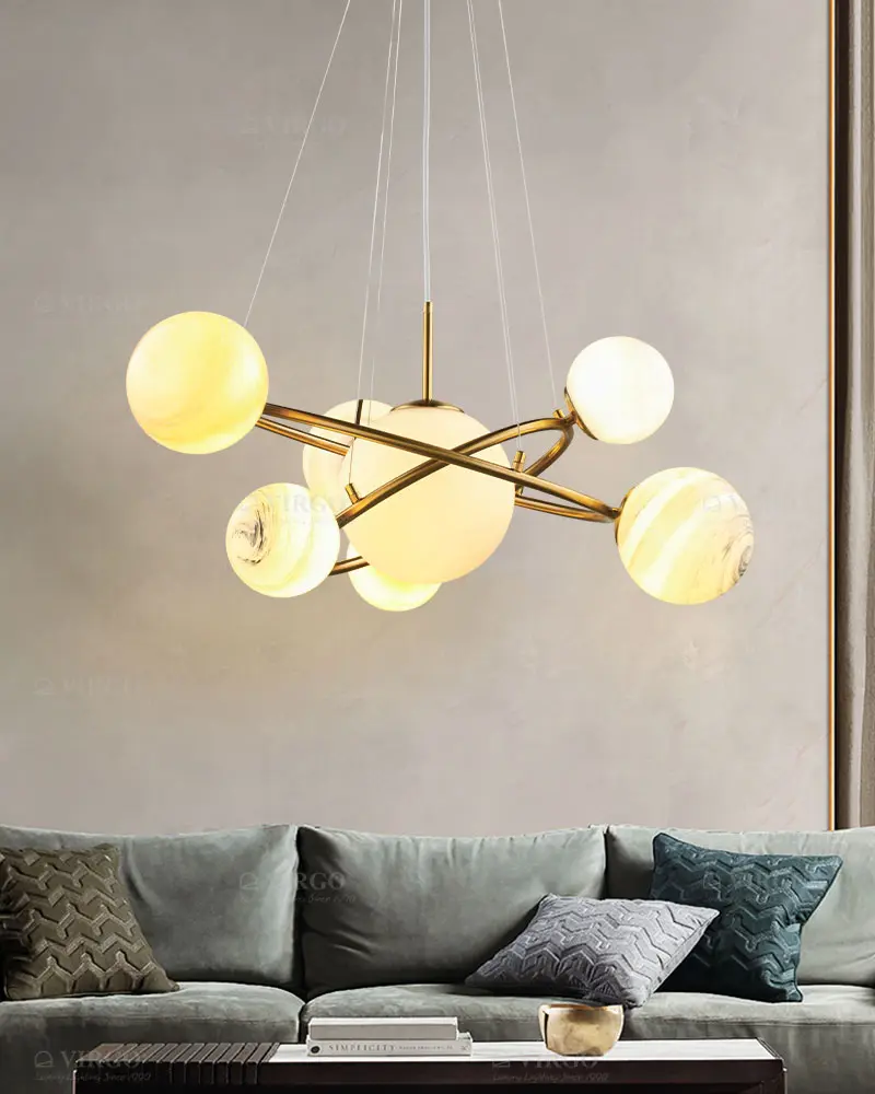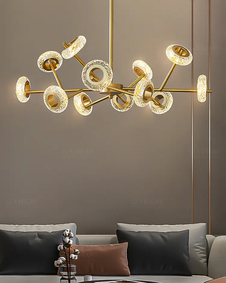 Phong Cách Ứng Dụng: Bao gồm các mẫu đèn chùm phân tử Branch (dạng nhánh cây) mang hơi hướng Bắc Âu (Nordic), hay các mẫu đèn chùm hình học tối giản (Minimalist), rất được ưa chuộng trong các căn hộ hiện đại và quán cà phê có phong cách thiết kế tinh tế.