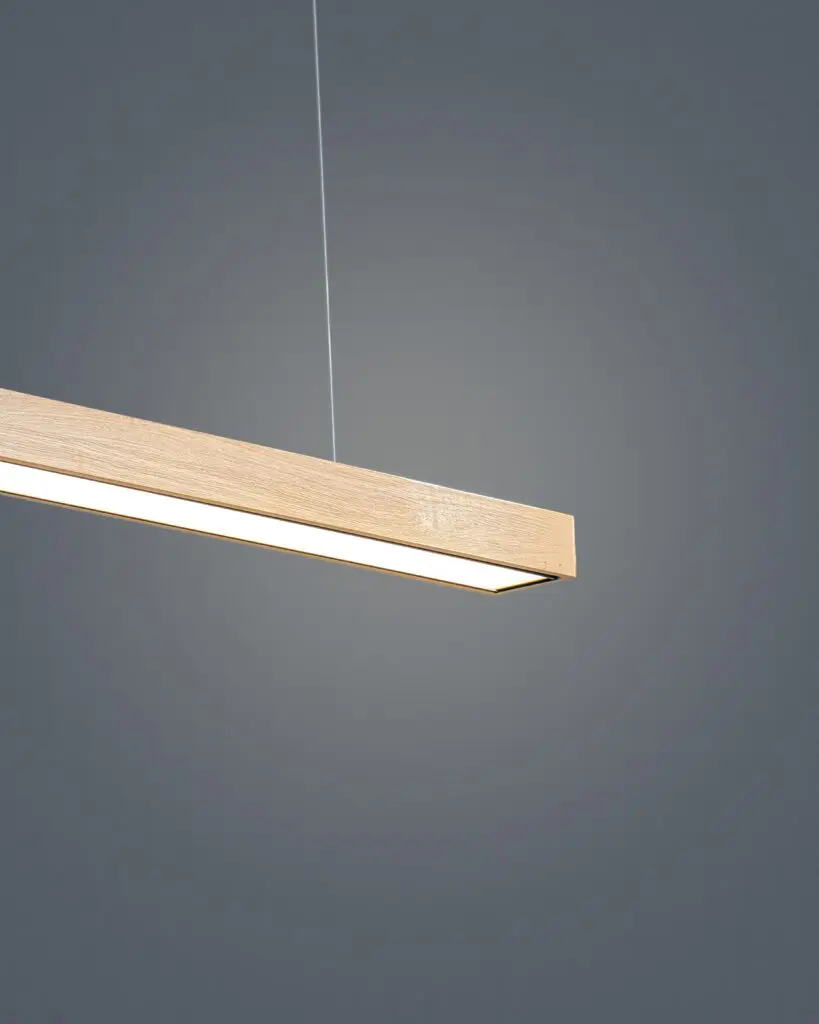 Vượt ra ngoài chức năng, đèn thả hiện đại là một yếu tố trang trí kiến trúc, thường sử dụng các hình khối cơ bản như tròn, vuông, hoặc thanh thẳng (linear), mang lại sự cân đối và trật tự cho căn phòng. Chất liệu thường là kim loại, thủy tinh hoặc acrylic, tạo nên vẻ ngoài bóng bẩy, sang trọng.