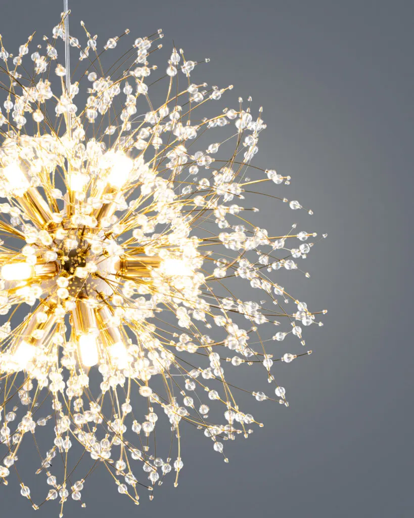 Đèn Thả Thủy Tinh/Pha Lê Hiện Đại: Sử dụng các hình dáng cầu, trụ hoặc giọt nước trong suốt/khói, mang lại sự lấp lánh nhưng vẫn giữ được đường nét gọn gàng, tinh tế.
