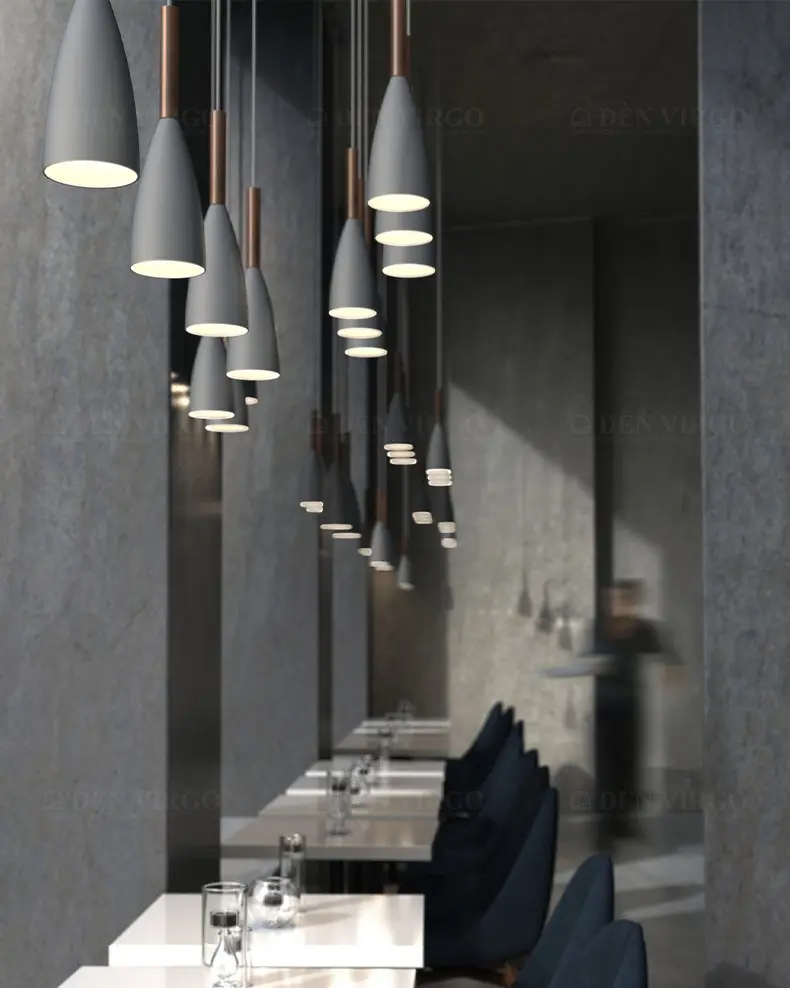 Đèn thả hiện đại là giải pháp chiếu sáng treo trần được yêu thích vì sự gọn gàng, sắc sảo và tính thẩm mỹ cao. Chúng là lựa chọn hoàn hảo để tạo điểm nhấn mạnh mẽ và cá tính trên bàn ăn, quầy bar, hoặc trong không gian phòng khách mở.