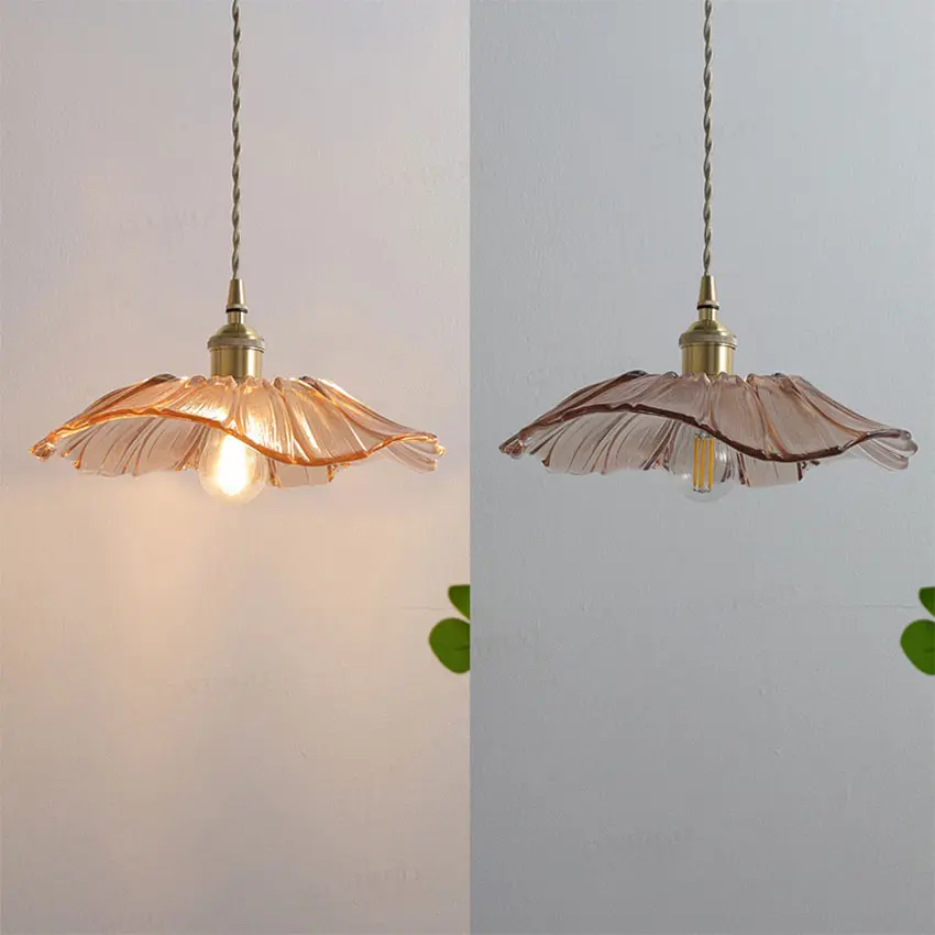 Đối với phòng ngủ hoặc góc thư giãn, đèn thả thủy tinh màu hổ phách hoặc mờ sẽ cung cấp ánh sáng dịu nhẹ, tạo cảm giác thư thái.