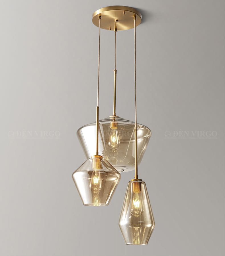Đối với phòng khách hiện đại, đèn thả thủy tinh với thiết kế hình học sắc nét kết hợp kim loại sẽ là điểm nhấn tinh tế.