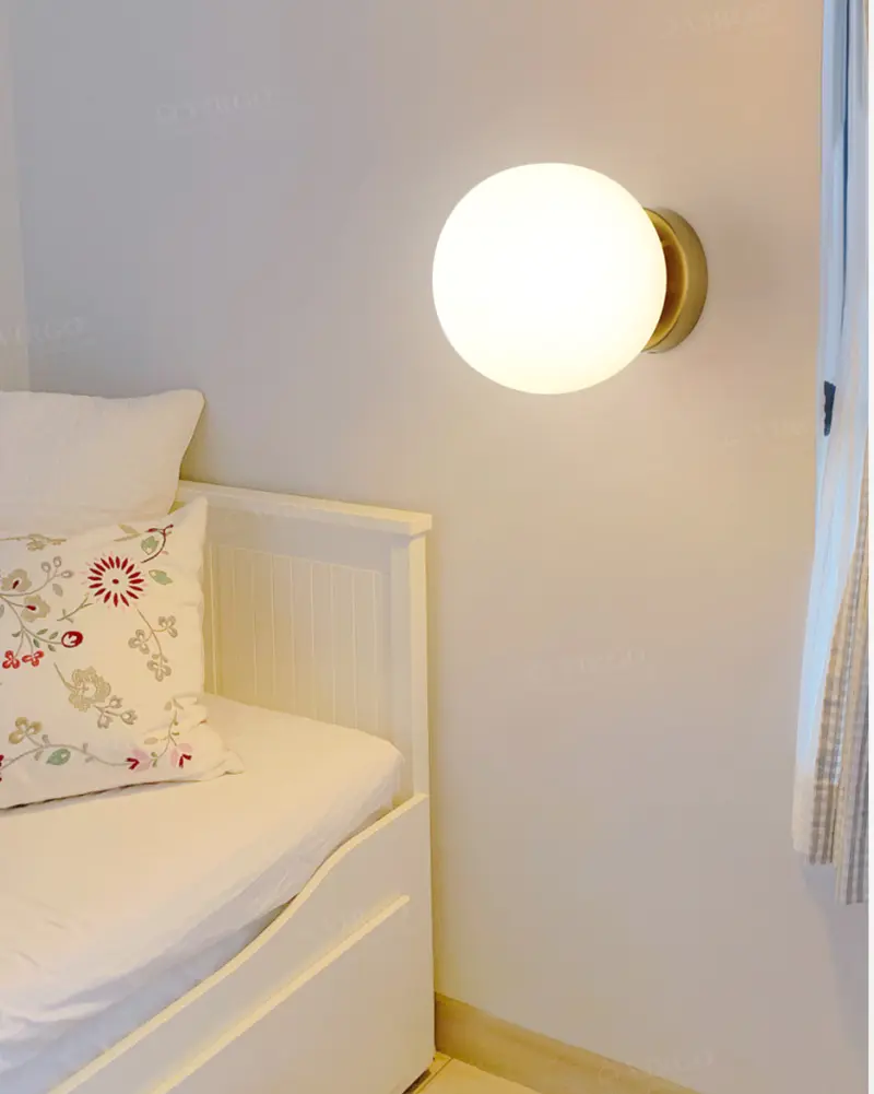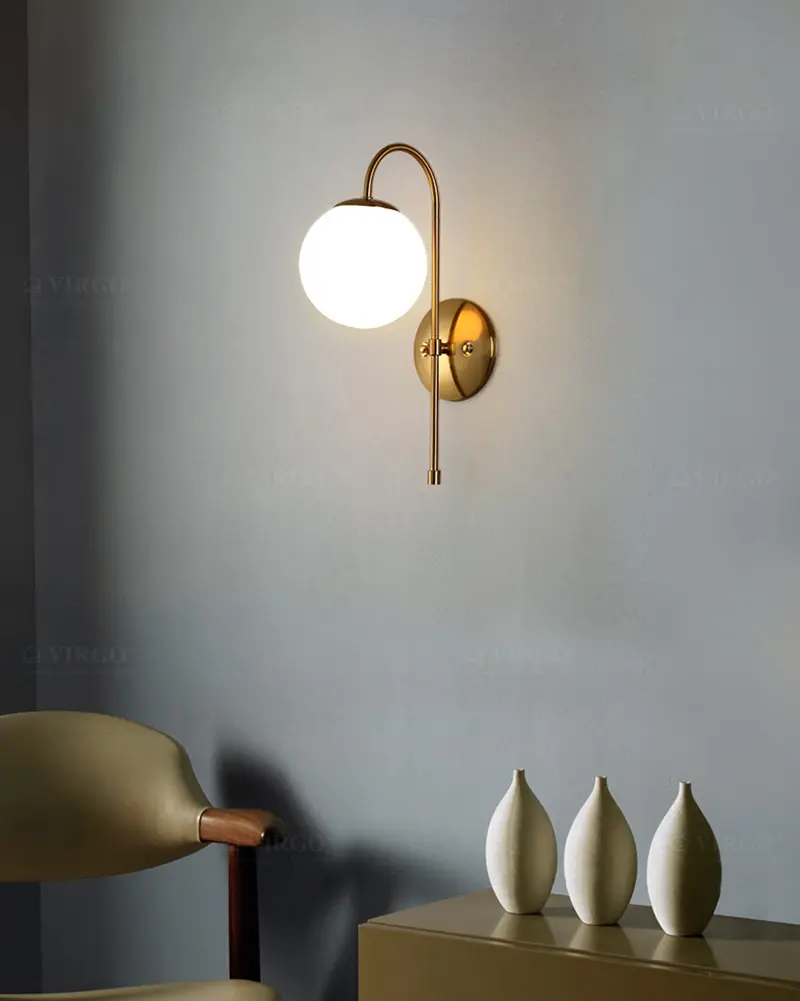 Đèn Tường Thủy Tinh Hình Cầu/Elip: Thiết kế đơn giản, thường sử dụng thủy tinh màu trắng sữa hoặc trong suốt, là biểu tượng của phong cách hiện đại và Mid-Century.